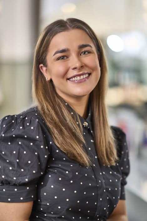 Maria, f. 1980, blev udlært som frisør den 31. december 2002. Hun startede hos Per Johs den 1. oktober 2003 og blev tilbudt at blive, da Trine overtog salonen i 2004.